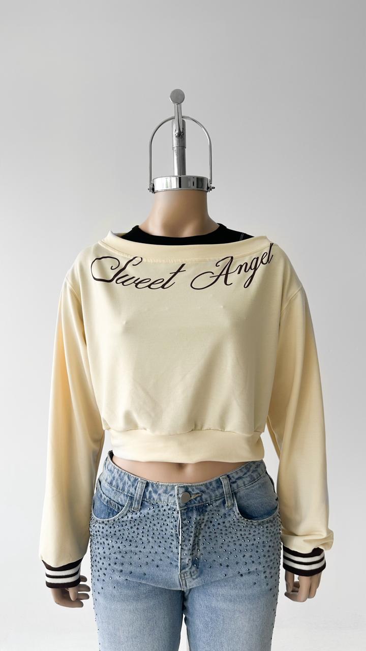 3501A Buzo Escote Bote Sweet Angel - crema Hay stock Crema